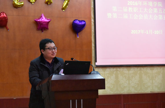 学校工会副主席高复阳讲话,并宣读校工会《关于同意best365体育官网登录入口召开第二届教职工代表大会第五次会议暨第二届工会会员代表大会第五次会议的批复》。
